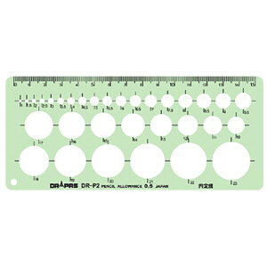 円定規とは製図や刺繍に使う定規です。いろんな大きさの円形の穴が空いています。